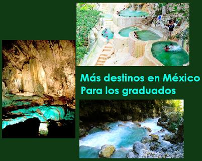 Los viajes de exploración también resultan muy atractivos para los jóvenes, además tienen la característica de ser menos costosos por el lugar en donde se encuentran y porque requieren de menos días de estancia, asi nos encontramos con las grutas de Cacahuamilpa en el Estado de Guerreo, maravilla de la naturaleza cuyas bóvedas llenas de estalactitas tienen entre 30 y 81 metros de altura, fue decretada Parque Nacional el 23 de abril de 1936 por el presidente Lázaro Cárdenas. O las Grutas de Tolantongo, un verdadero oasis donde convergen armonía, descanso y diversión en uno de los balnearios de aguas termales más bellos del Estado de Hidalgo. Cerca o más lejos, en avión o en autobús; de alto a bajo presupuesto; planeado con meses de anticipación o con el tiempo encima, México tiene para todos. Su gran variedad de atractivos turísticos aseguran que ese viaje de fin de cursos sea una experiencia que jamás se olvide, porque asi es México, una vez que lo conoces jamás lo olvidas. |